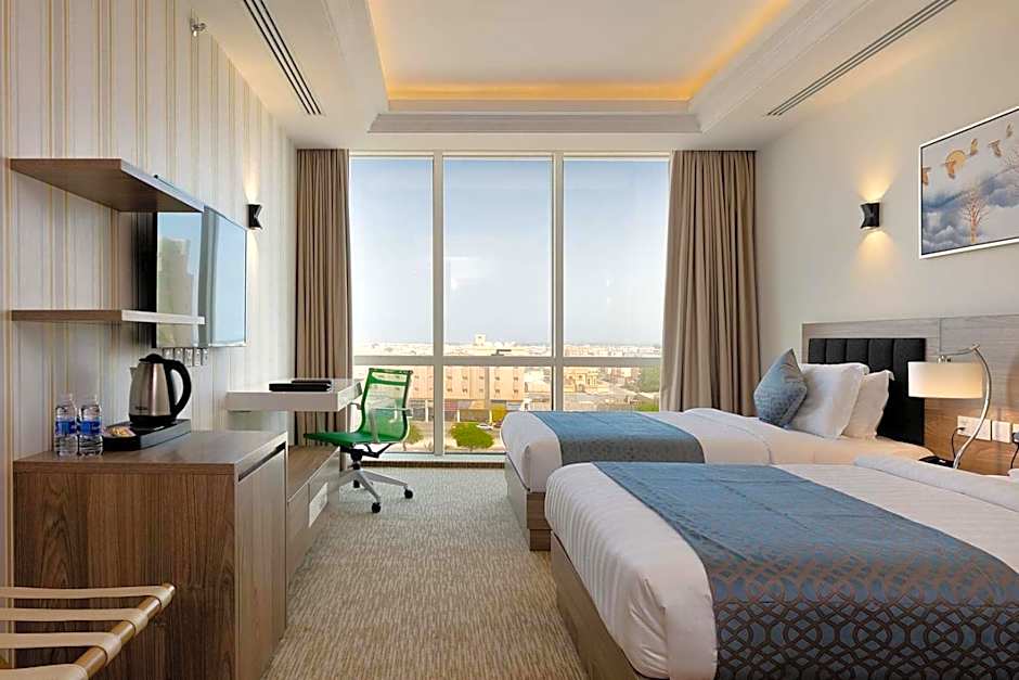 Providing free toiletries and bathrobes, this twin room includes a private bathroom with a walk-in shower, a hairdryer and slippers. The spacious air-conditioned twin room provides a flat-screen TV with cable channels, a private entrance, soundproof walls, a mini-bar as well as city views. The unit offers 2 beds.